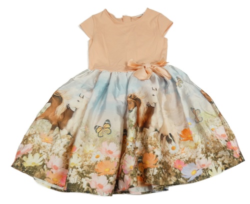 Meruňkovo-farebné šaty s kvetmi a koňmi