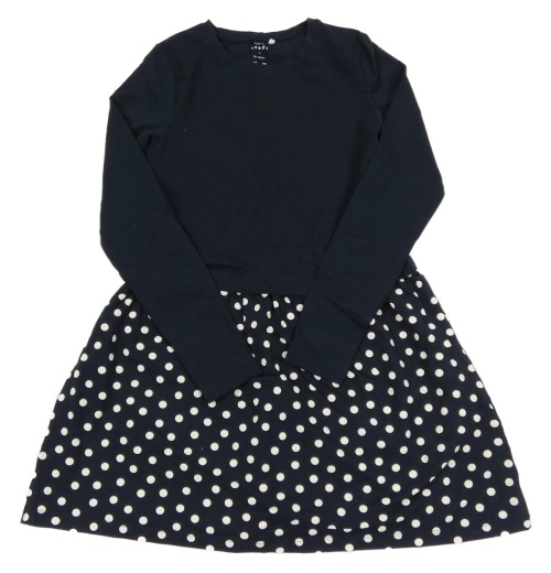 Tmavomodré bavlnené šaty s puntíkatou sukní Name it
