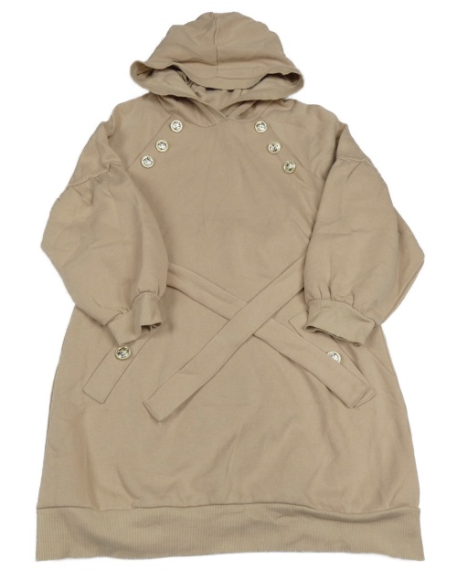 Béžové teplákové šaty s knoflíky, opaskom a kapucňou River Island