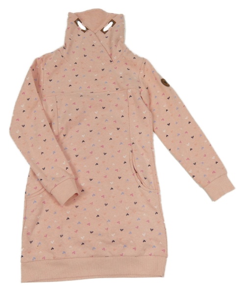 Svetloružové teplákové šaty so srdiečkami a komínovým golierom Yigga