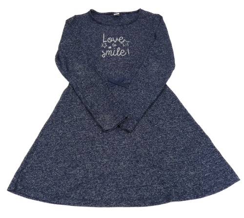 Tmavomodré melírované úpletové šaty s nápisom Yigga