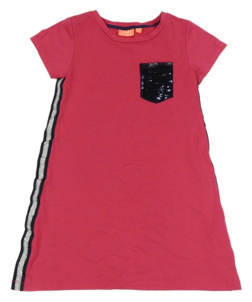 Fuchsiové šaty s pruhmi a flitrovou vreckom