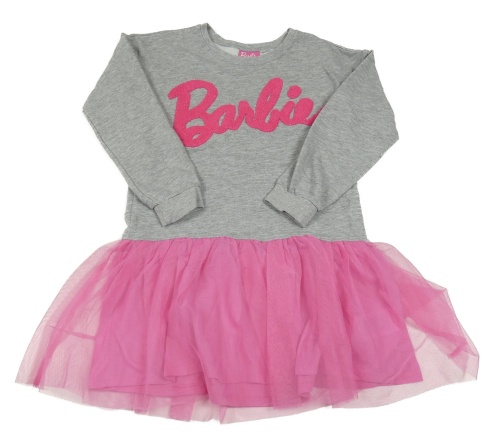Sivo-ružové teplákovo/tylové šaty s nápisem - Barbie