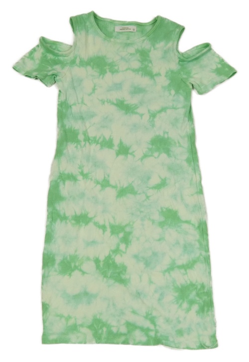 Svetlozelené batikované rebrované šaty s průstřihy na ramenou Reserved