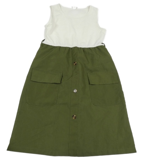 Bílo-khaki rebrované šaty s vreckami a gombíkmi Shein