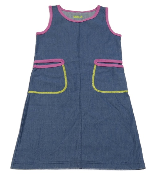 Modré šaty riflového vzhledu s fialovým lemem