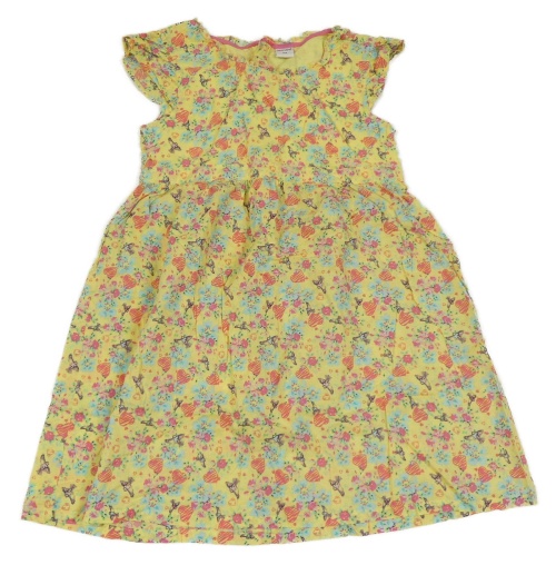 Žlté plátenné šaty so srdiečkami a vtáčky Pocopiano