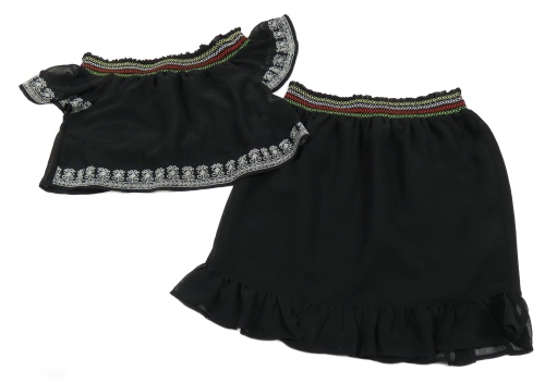2 set - čierna silonová sukňa s farebným lemem + crop top s šedými výšivkami River Island