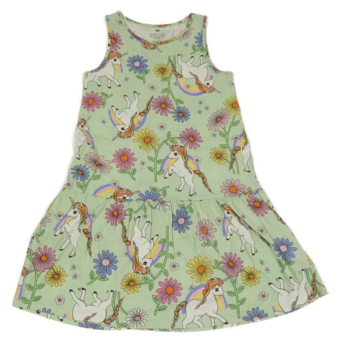 Zelenkavé kvetované bavlnené šaty s jednorožcami H&M