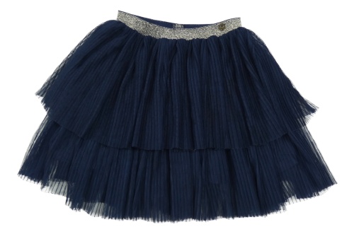 Tmavomodrá plisovaná tylová vrstvená sukňa s volánikmi