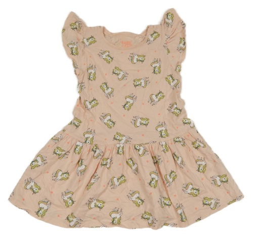 Svetloružové šaty s jednorožcami a volánikmi C&A