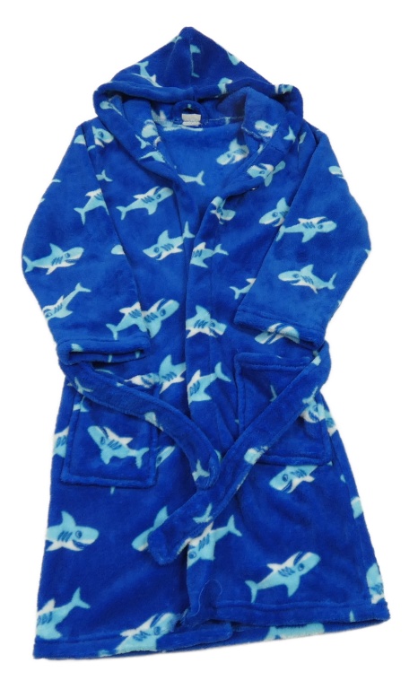 Tmavomodrý plyšový župan so žralokmi a kapucňou