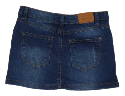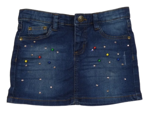 Tmavomodrá rifľová sukňa s kamienkami a farebnymi korálky a ošoupaného vzhledu Sfera