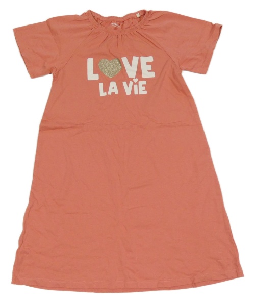Lososové šaty s nápismi a srdiečkom Vertbaudet