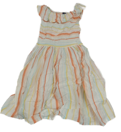 Smetanovo-oranžovo-žlto-modré pruhované plátenné šaty Kiabi
