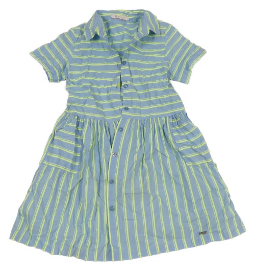 Modro-neónově žlté pruhované plátenné prepínaci košeľové šaty