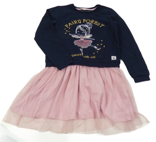 Tmavomodro-ružové teplákovo/tylové šaty s baletkou a nápisom