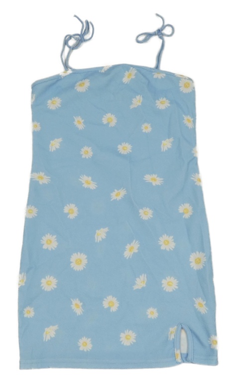 Modré púzdrové šaty s kvietkami a rozparkem Shein