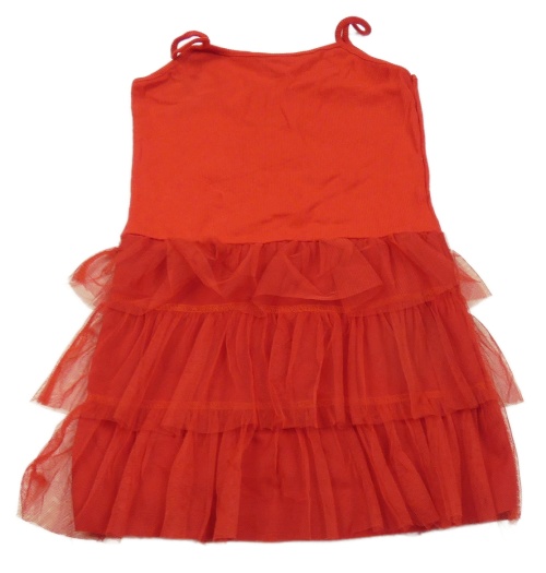Červené rebrované šaty s tylovymi volániky