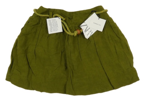 Nové - Khaki ľanová sukňa s tkaničkou Zara