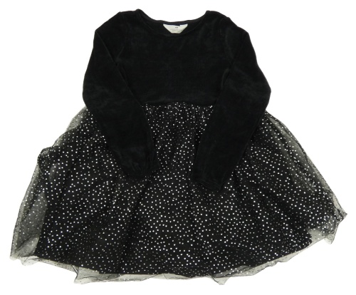 Čierno-strieborné žinylkové šaty s tylovou puntíkatou sukní H&M