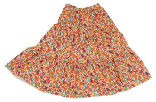 Červeno-ružovo-zelená kvietkovana midi sukňa
