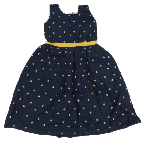 Tmavomodro-bielo-okrové vzorované plátenné šaty