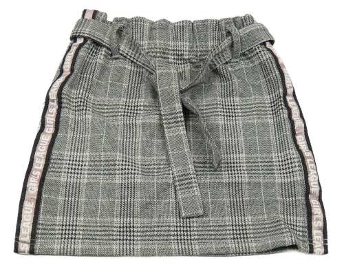 Sivo-čierno-ružová kockovaná sukňa s pruhmi s nápismi a opaskom Page One Young