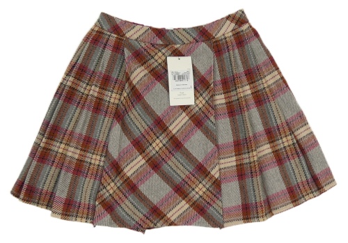 Nové - Sivo-hnedo-vínová kockovaná skladaná vlnená sukňa Tu