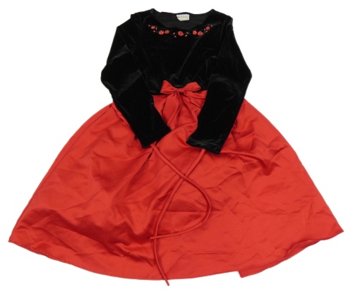 Čierno-červené zamatové šaty s kvetmi a mašlou