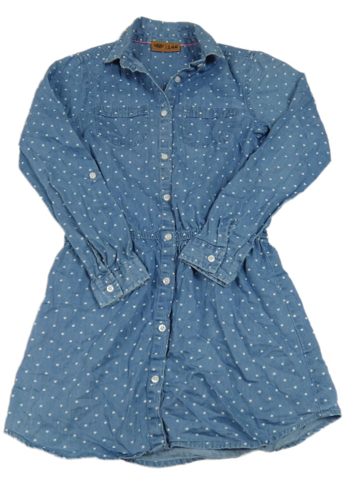 Modré ľahké rifľové šaty so srdiečkami