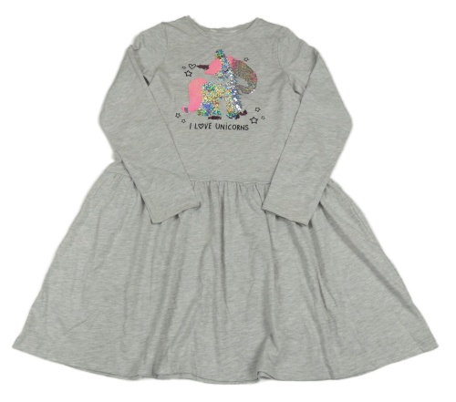 Sivé melírované šaty s jednorožcem z flitrů H&M