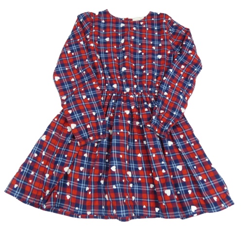 Červeno-tmavomodro-modré kockované šaty s bielými srdiečkami Zab Kids