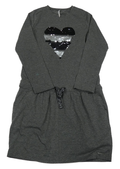 Tmavosivé melírované bavlnené šaty so srdcem z překlápěcích flitrů Coccodrillo