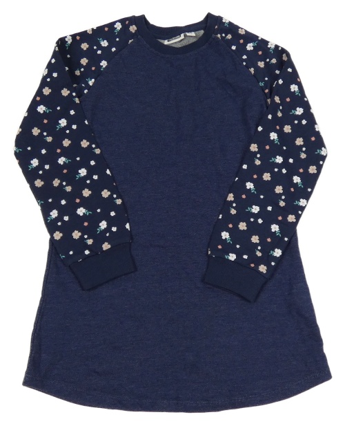 Tmavomodré teplákové šaty s kvetovanymi rukávy Pocopiano
