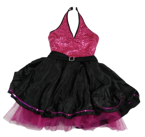 Malinovo-čierne taneční šaty s flitrami a všitým body