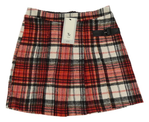 Nové - Červeno-smetanovo-čierna kockovaná vlnená sukňa Tu