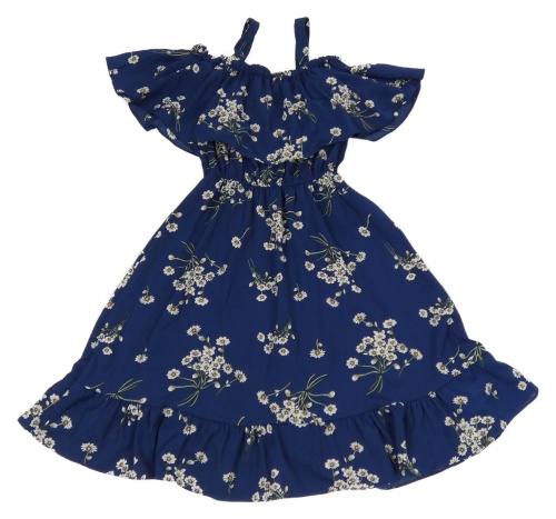 Tmavomodré letné šaty s kvietkami a volánikom