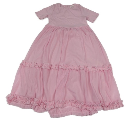 Svetloružové dlhé šaty s tylovou sukní a volánikmi Reserved