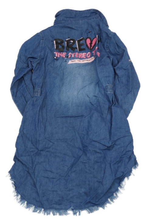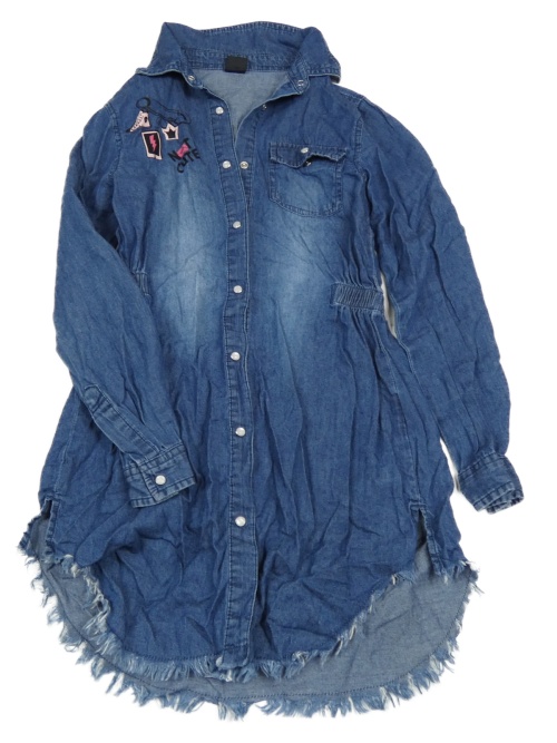 Modré propínací košilové šaty riflového vzhledu s obrázkami Y.F.K.