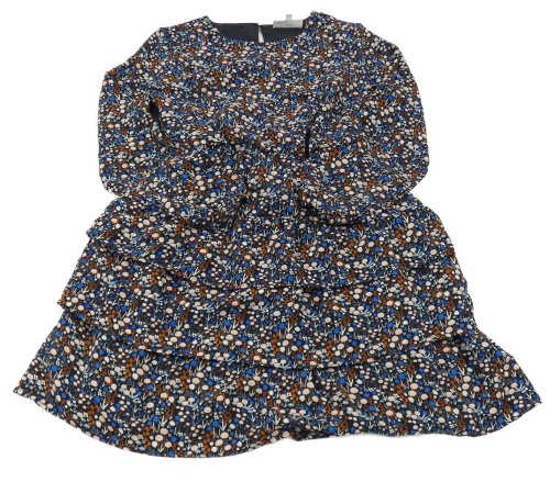 Tmavomodro-svetloružová -hnedé kvetované šifónové šaty