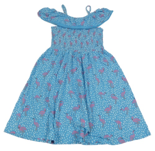 Modré bavlnené žabičkové šaty s plameňáky Tu