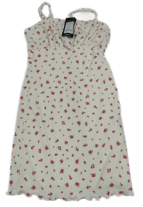Nové - Smotanové rebrované elastické šaty s kvítky New Look