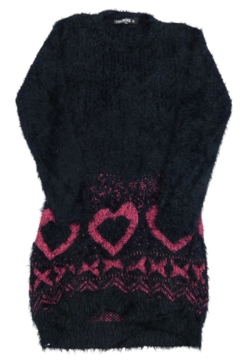 Tmavomodré chlpaté svetrové šaty so srdiečkami
