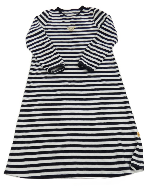 Čierno-biele pruhované zamatové šaty s medvěďom Steiff
