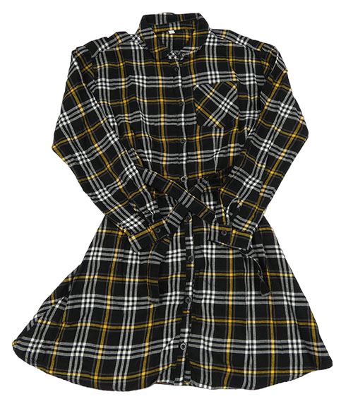 Čierno-bielo-horčicové kockované prepínaci košeľové šaty s opaskom C&A