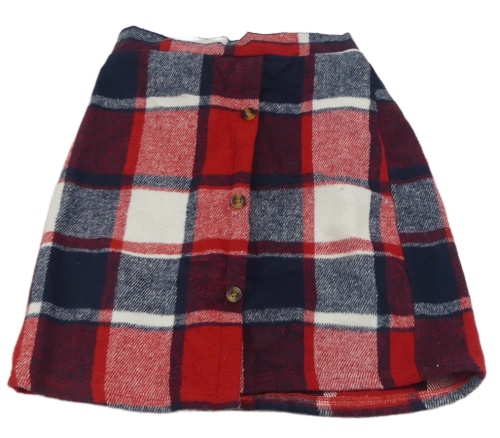 Tmavomodro-červeno-biela kockovaná vlnená sukňa s gombíkmi