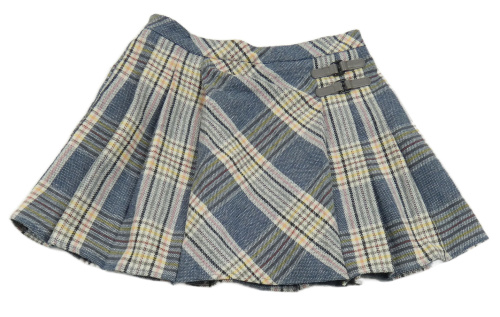 Béžovo-modro-ružová kockovaná vlnená sukňa George
