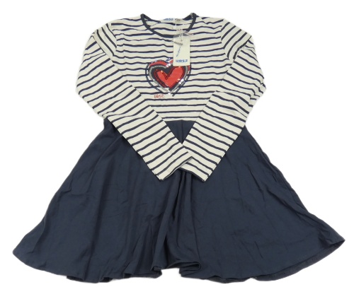 Nové - Smetanovo-tmavomodré pruhované bavlnené šaty so srdcem a flitrami