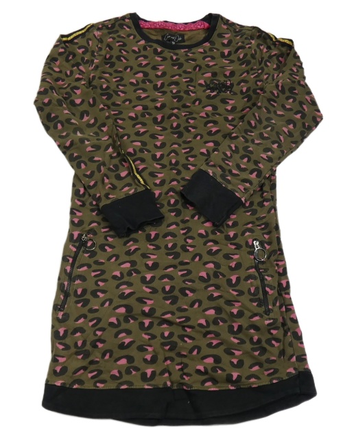 Kaki-čierno-ružové vzorované teplákové šaty s nápisom